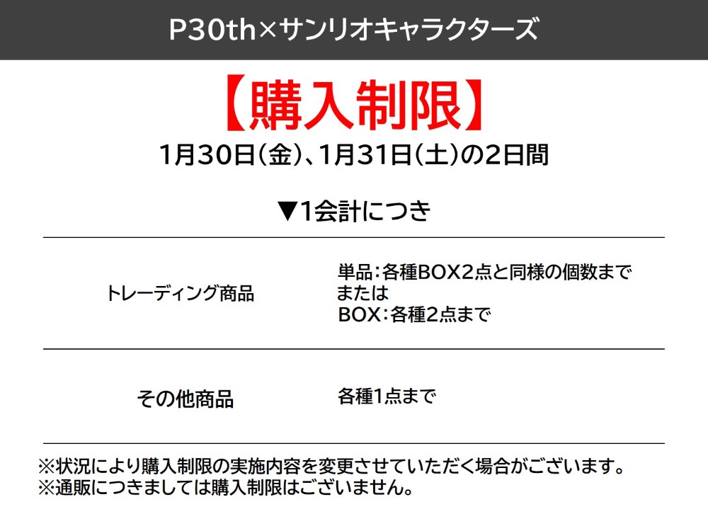 1月30日(金)、1月31日(土)の2日間において、 POP UP SHOPでは購入制限がございます。
