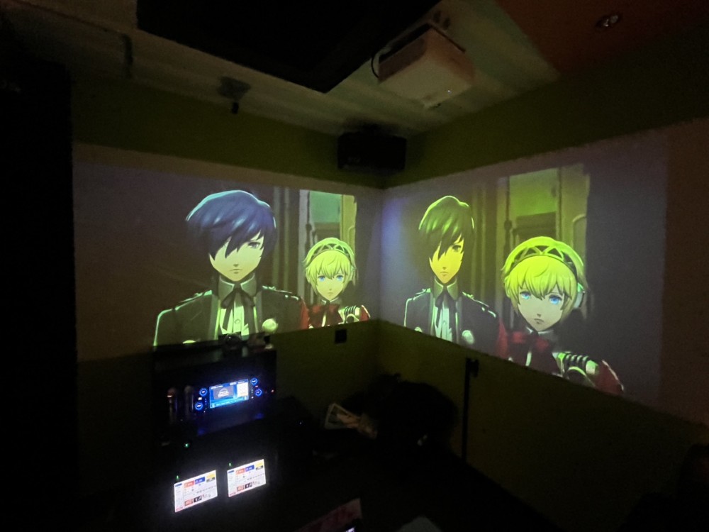 カラオケエリアの一角に設けられたコラボルームは、入口からすでに『ペルソナ3 リロード』一色。
