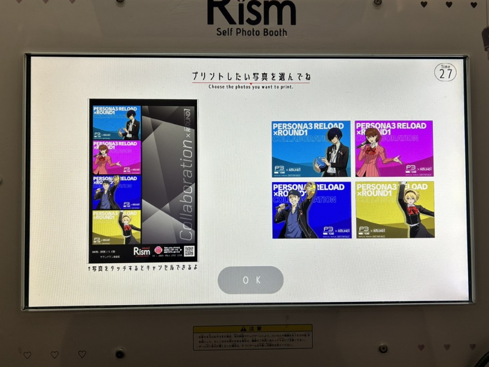 『ペルソナ3 リロード』のコラボパックを利用すると、コラボ限定ノベルティ「カードケース」と、ラウンドワンのオリジナルプリント機「Rism(リズム)」で撮影できるフォトコインがもらえます。