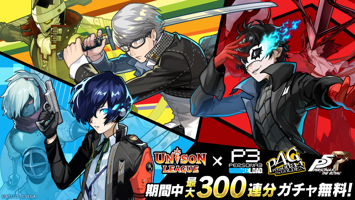 『ペルソナ3 リロード』『ペルソナ4 ザ・ゴールデン』『ペルソナ5 ザ・ロイヤル』の3タイトルと、スマートフォン向けに配信中のRPG『ユニゾンリーグ』のコラボが開催!