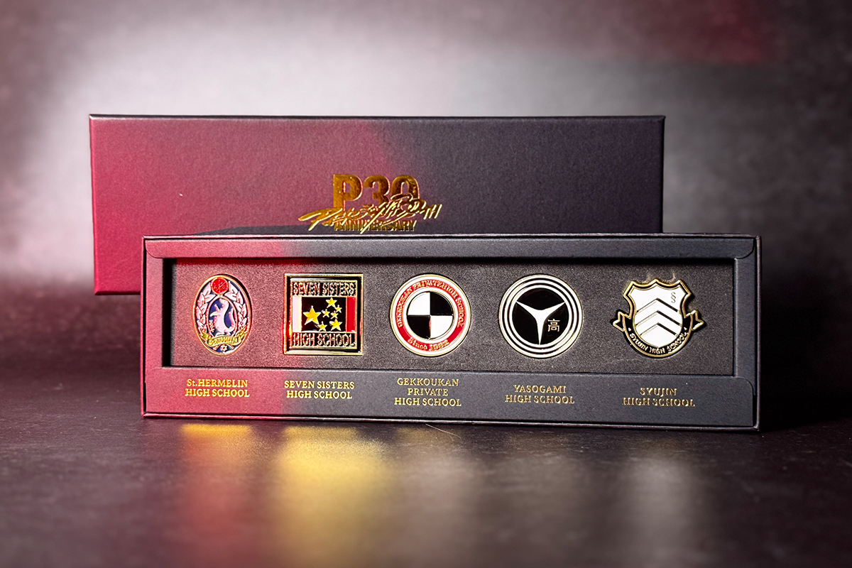 ¥4,950(税込)『ペルソナ』シリーズの主人公たちが通う学校の校章をピンバッジに。オリジナルの高級感のあるBOXが付属するため観賞用として飾ってもオススメです。