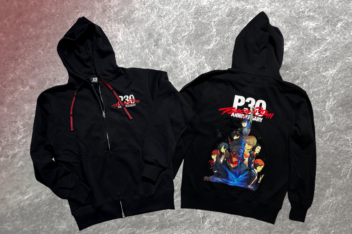 ¥11,000(税込)バックプリントにはP30thのKVのイラストをプリント!胸元にはP30thのロゴを刺繍でデザイン。フード紐のプリントにも注目です。 ※M,L,XLの3サイズ展開